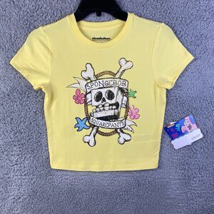 SpongeBob SquarePants Womens T-Shirt Cross & Bones Yellow Sz S Nickelodeon NWT