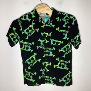 Spongebob Squarepants Mens Short Sleeve Button Up Skull Shirt Size Medium NWT