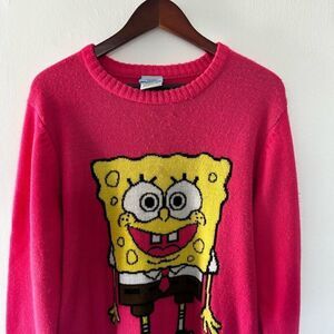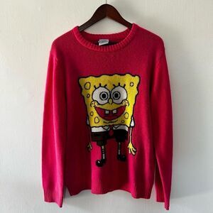 Spongebob Squarepants Nickelodeon Magenta Pink Sweater Size XL y2k Nostalgic