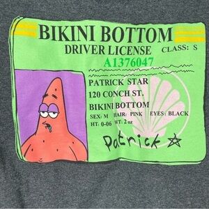 Nickelodeon Bikini Bottom Spongebob Squarepants Patrick Star Driver License I.D. Grey Hoodie Size Large