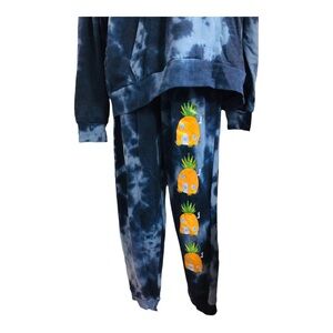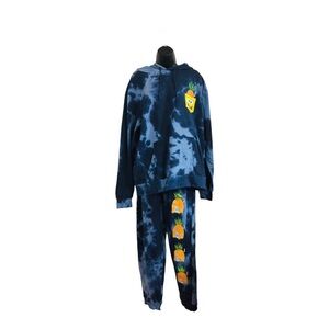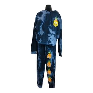 Nickelodeon Spongebob squarepants dark blue tie dye graphic print hoodie sweatshirt and sweatpants joggers set size large brand new