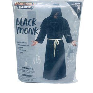 This Black Monk Costume by Spooktacular Creations offers an authentic and mystical appearance, perfect for themed events or Halloween. The ensemble includes a hooded cape, robe, necklace, and rope, all crafted in a somber black hue. The medium size ensures a comfortable fit for most adults, making it a practical choice for costumed gatherings.