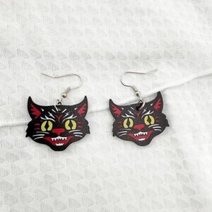 Spooky Black Cat Earrings, Witchy Jewelry, Black Cat Earrings, Witchy Earrings