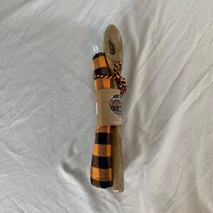 Spooky Halloween Wooden Spoon & Black Gingham Dish Towel Set