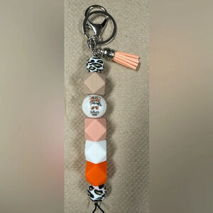 NEW✨ Silicone hexagon and cheetah beads and acrylic circular beads. Keychain is a large key ring and lobster clasp. Acrylic bead is a mama that says ‘spooky mama’.
