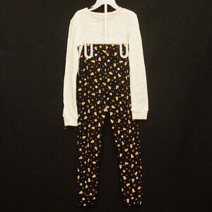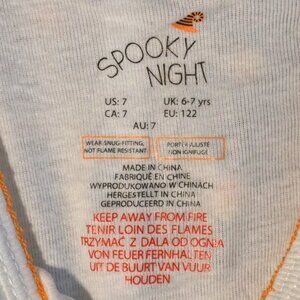 Spooky Night 2 Piece Set. Halloween. White Top with Long Sleeves and Front Graphic “Mommy’s Under My Spell” with Black Cat and Pumpkin. Bottom Pants with Elastic Waist Black with Stars and Candy Corn. 100% Cotton. Girl’s Size 7. New with Tags.