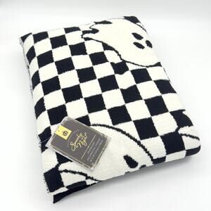 Spooky Night Checkerboard Ghost Throw Blanket Halloween Black Off White NEW