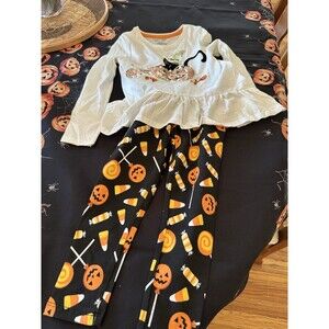 Spooky Night Kids Size 4 NWOT Halloween 2 Piece Pumpkin and Cat Sparkle