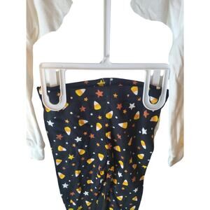 Featuring a festive Halloween theme with pumpkins, black cats, candy corn, and stars, adorned with gold glitter accents on the shirt. Your baby girl will look absolutely precious in this outfit.
