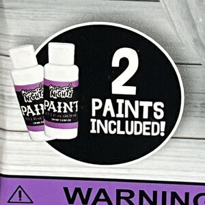 Includes pre-punched foam sheet, 2 pre-punched glitter cards, 1 pre-punched glow card, 1 foam brush, 2 bottles of paint (2 fl oz/59.14 mL each), 4 double-sided tape strips, and instructions