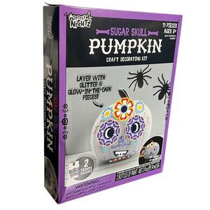 Spooky Nightz Sugar Skull Pumpkin Craft Kit 11pc Halloween Glow Glitter DIY Ages