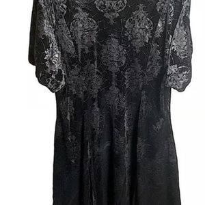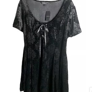 Spooky Skull and Roses Embossed Velvet Tie Front Dress ready for a night out!