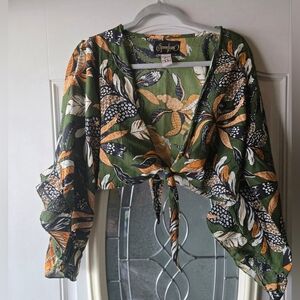 Elevate your style with this chic green floral crop top and matching shorts with pockets. Featuring a vibrant pattern, it's perfect for any occasion.