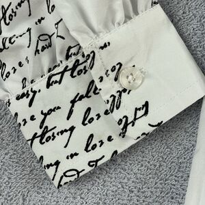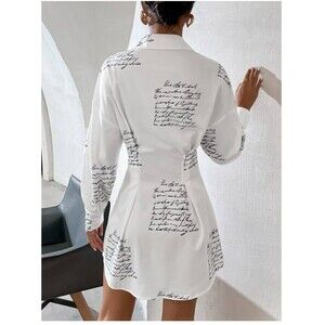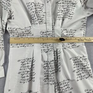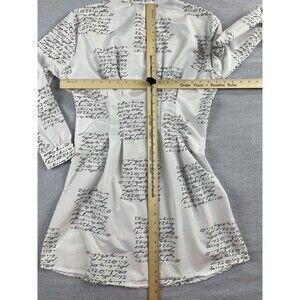 Spoon Jeans Long Sleeve Button Up Shirt Dress Women's Medium White Black Script / Small at Waist for a voluptuous look. Belt it for a polished finished look!!