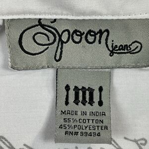 Spoon Jeans Long Sleeve Button Up Shirt Dress Women's Med White Black Script