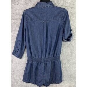 Spoon Jeans Size 5 Blue Jean Jumper Roll Tab Sleeves Romper Preppy y2k