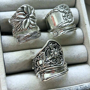 This spoon ring is a cross with flowers ring styled as a y2k ring and vintage ring. It is a fully adjustable ring and can fit sizes 5-12. This chunky ring silver is the perfect spoon ring for women and gift for her!