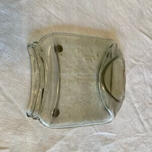Recycled repurposed glass jar that was melted to make a spoon rest. Could also be used as soap dish or any other desired purpose. There are felt protectors on the bottom. The spoon is NOT included. No chips or cracks.