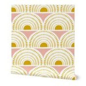 Spoonflower Prepasted Removable Smooth Wallpaper Aurora- Blush and Goldenrod Geo