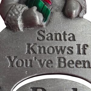 The fun is in the details: a clever spinner mechanism on the bottom allows you to change the word visible in the oval slot from "Good" to "Bad"—Santa truly knows it all!