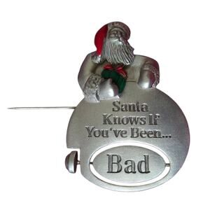 Spoontiques Christmas Brooch Pin Santa Good Bad Spinner Holiday Festive Novelty