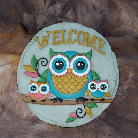 Spoontiques Owl Welcome Stepping Stone Outdoor or Indoor Decor 9.5"