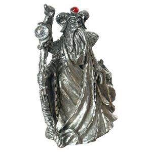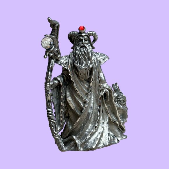 Step right up and gaze into the crystal ball this vintage pewter wizard is ready to conjure some old-school magic onto your shelf!
