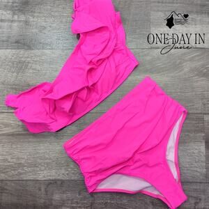 Sporlike One Shoulder Ruffle High Waist Bikini Swimsuit Size M