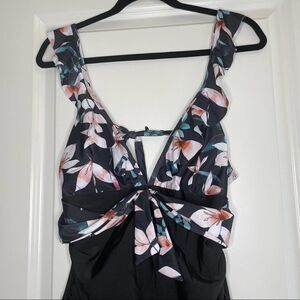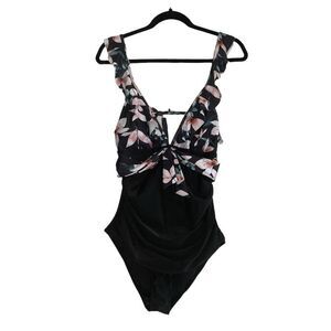 Sporlike Ruffle One Piece Floral and Black Bathing Suit XL