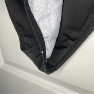 There is one small knick in the fabric in the crotch area as shown. I tried to cut a string and accidentally caught the fabric. The elastic is intact.
