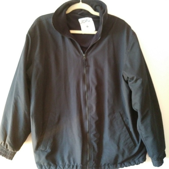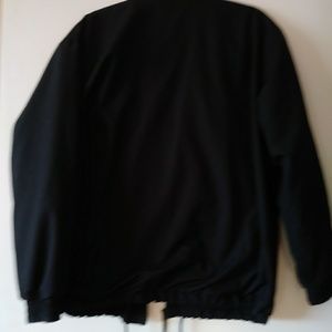 Black jacket rain resistant comfortable jacket has a zipper. . Perfect for the rain and comfortable for any weather