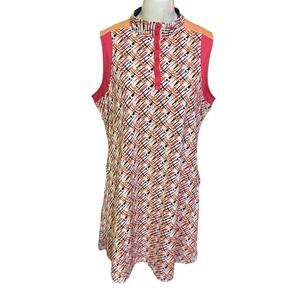 Gorgeous tennis or golf dress. Abstract print. High neck. Side & back pocket. Micro mesh. Sleeveless. Sweat wicking.