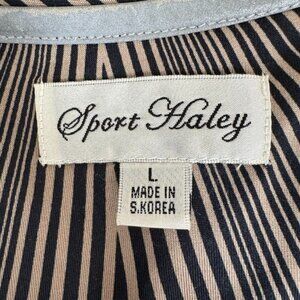 Sport Haley Black Tan Optic Print Sun Protection Zip Collar Polo Long Sleeve Golf Shirt Size Large