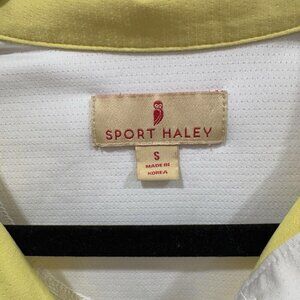 The Sport Haley Women's Addison Sleeveless Polo in yellow is designed for golf enthusiasts in a size small. This polo shirt features a sleeveless design, making it ideal for warmer weather and providing freedom of movement during golf swings. With a sporty theme, this top offers both style and functionality on the golf course, showcasing the Sport Haley brand's commitment to quality and performance in women's golf apparel.