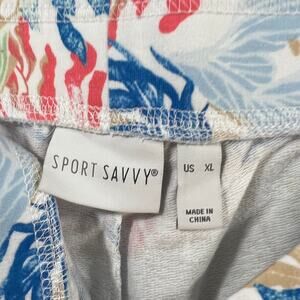 Sport Savvy French Terry Printed Pant w/ Ankle Drawstring White Multi, X-Large