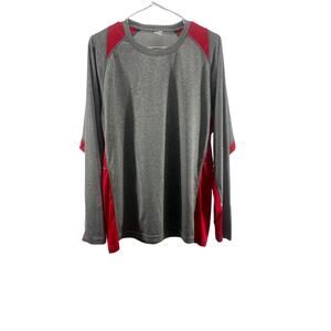 Sport Tek Boys' Gray Red Color Block Long Sleeve T-Shirt Youth Size Large