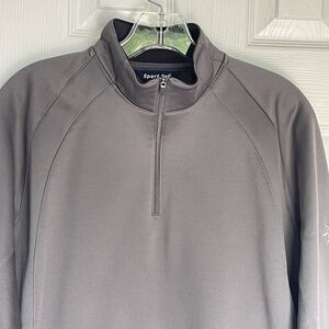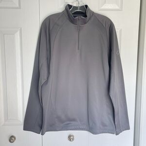 The pullover features long sleeves and a zip closure, making it easy to put on and take off, and it comes in a stylish gray color.