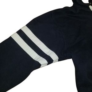 Great condition. Contrast Striped sleeves. Heavyweight fleece. Navy Blue with White accents