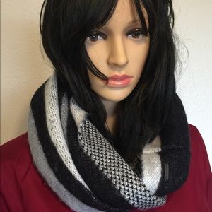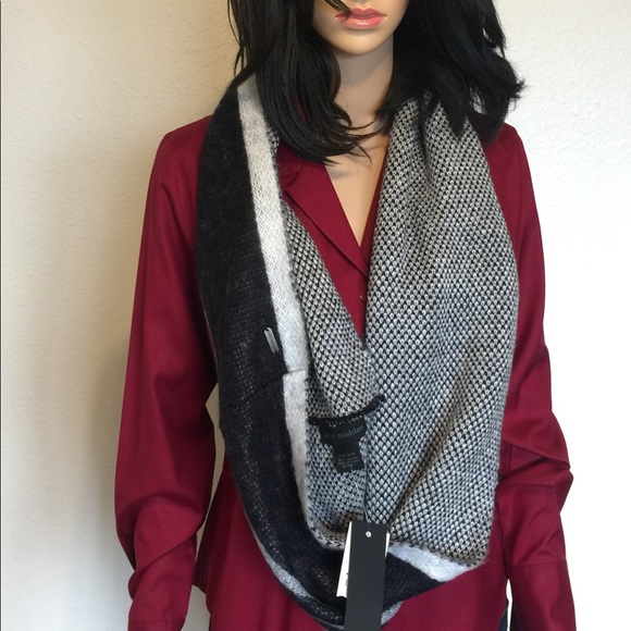 Comfortable Steve Madden sport infinity loop neckwear. Approx 56"x13.5". Material: Acrylic. Color black, gray, & ivory