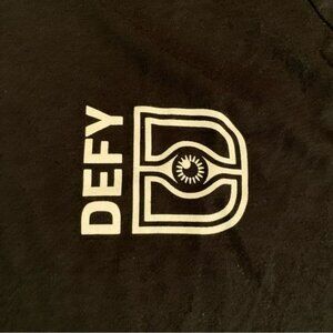 Sport-Tek black polo featuring the Defy logo. Comfortable and stylish, perfect for casual or professional settings. Men's size Large.