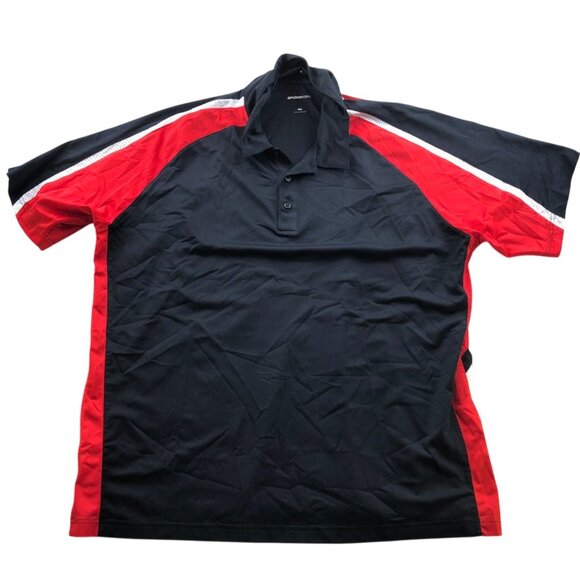 This Sport-Tek Men's Polo Shirt in size 4XL is crafted for superior comfort and athletic performance. Made from high-quality polyester, it offers durability and breathability. The striking black and red color scheme ensures a stylish look, while the mesh sides enhance ventilation. Ideal for both casual wear and sports activities.