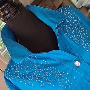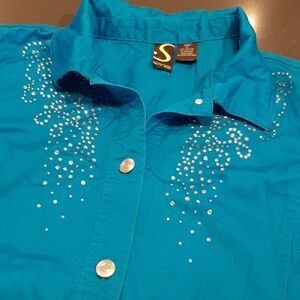 Sportelle Blue with Bling Quarter Sleeve Button Down Shirt