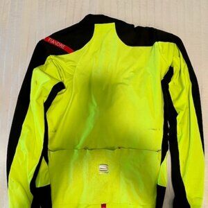 Fiandre jacket, size L, from my personal kit. Gore Windstopper in front. Three rear pockets. Good condition with some road staining on the back as shown. Sportful tends to a very athletic cut. I am 5'10 and weigh 170 and this is a good fit. I'm not riding on the road any more. This was a great wind & rain jacket when I was.