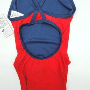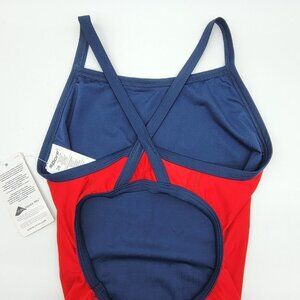 Sporti Guard Piped Thin Strap One Piece Swimsuit Womens Size 28 Red Navy