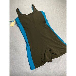 Sporti Womens Scoop Neck Unitard Swimsuit Size 18 Black/Blue