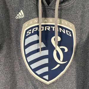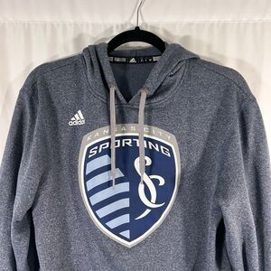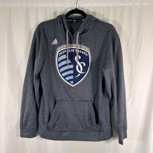 Sporting Kansas City Hoodie Men's Small Blue Adidas Drawstring Pockets Pullover