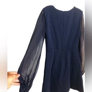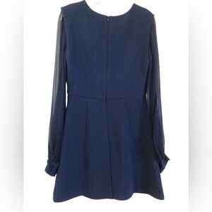 Sportmax Sheer Sleeve Round Neck Navy Blue Mini Dress Fit Flare Medium NWT