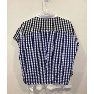 Super cute blouse from Sportmax. White button up with blue gingham print. Cute details