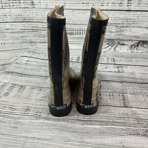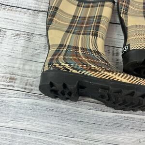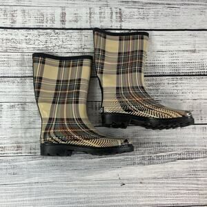 Sporto AMY Rubber Rain Duck Boots size 6 Black Tan Blue Plaid Calf Any Weather