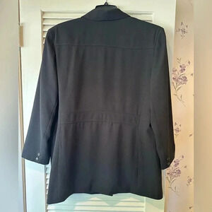 Elevate your wardrobe with this versatile black blazer that can be worn for work, dressed up for a night out, or dressed down with jeans and sneakers or loafers.